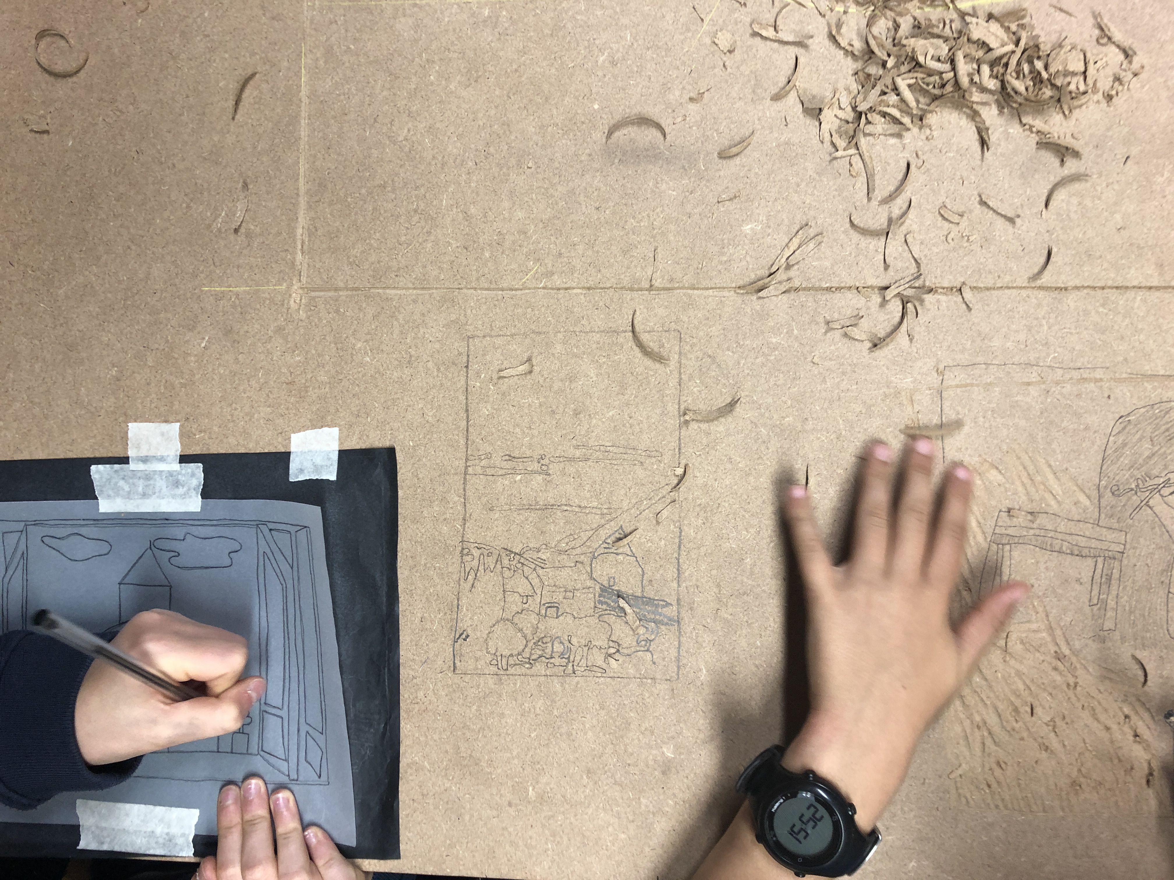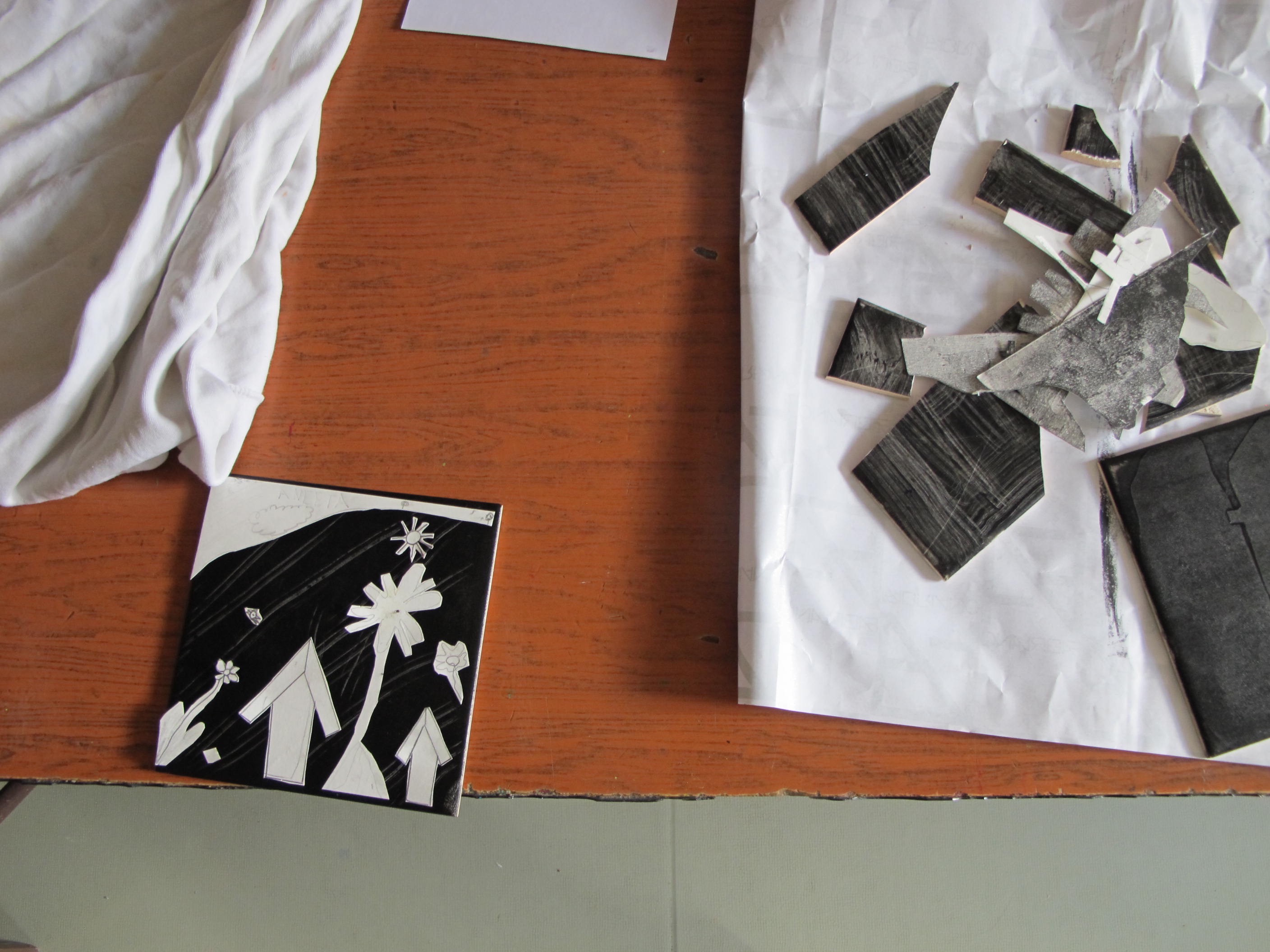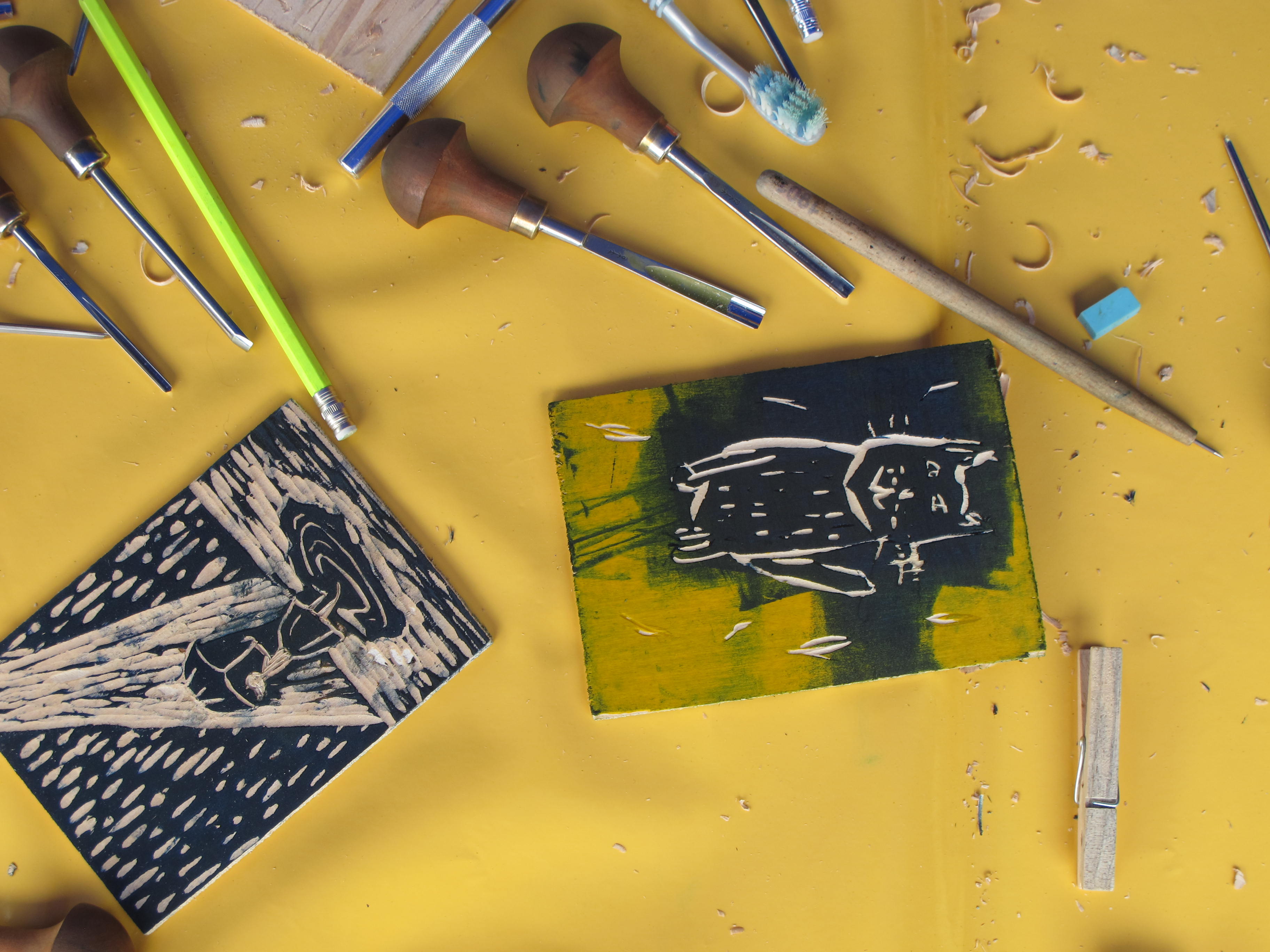 Au menu : gravure sur bois et grattage de pellicule diapo !