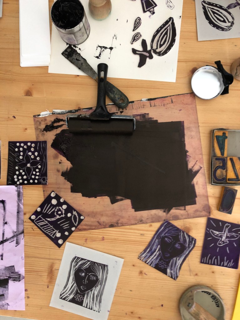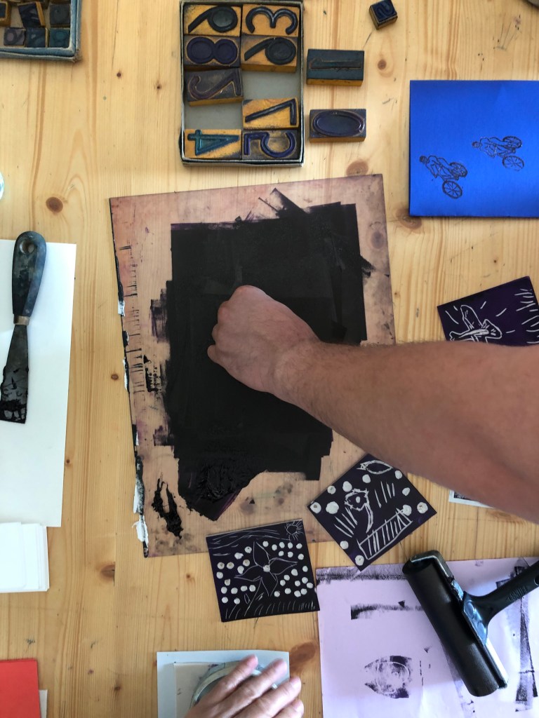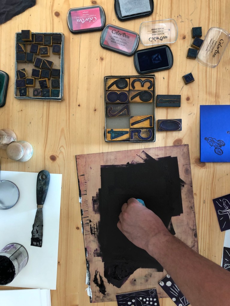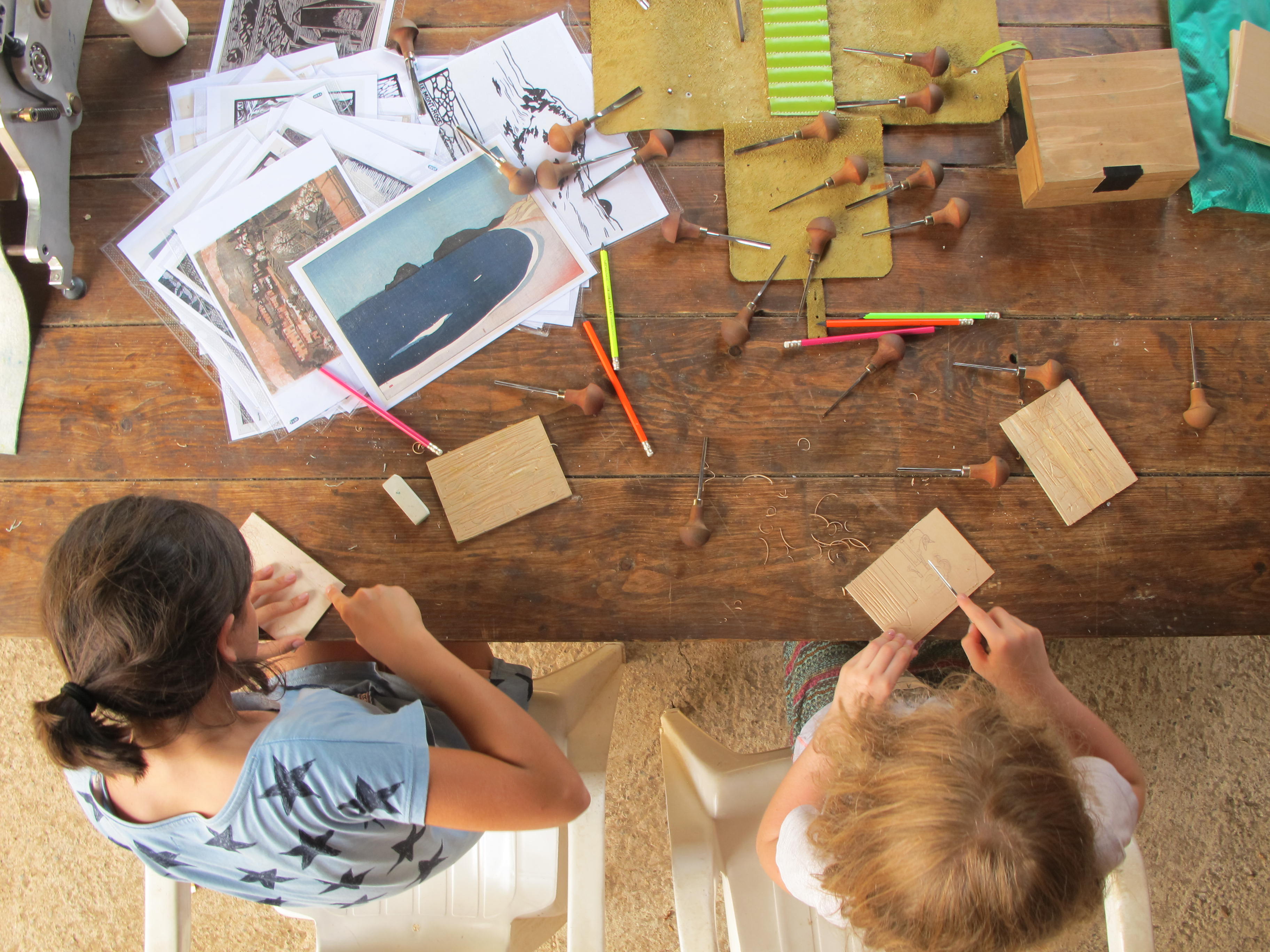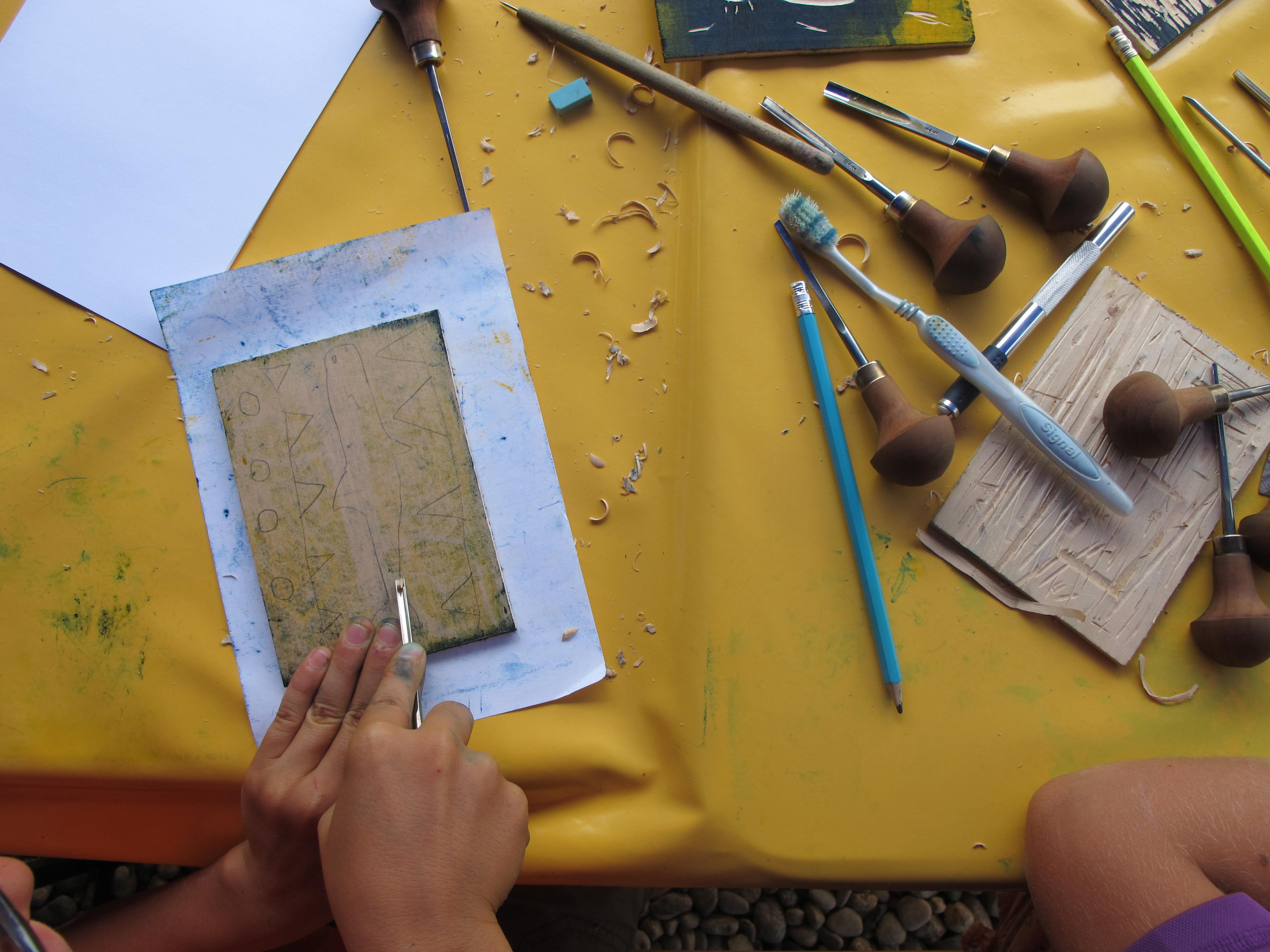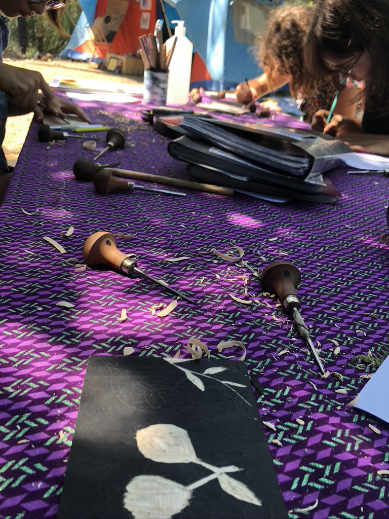 Les mains et l’encre – ateliers mobiles de gravure sur bois – été 2019