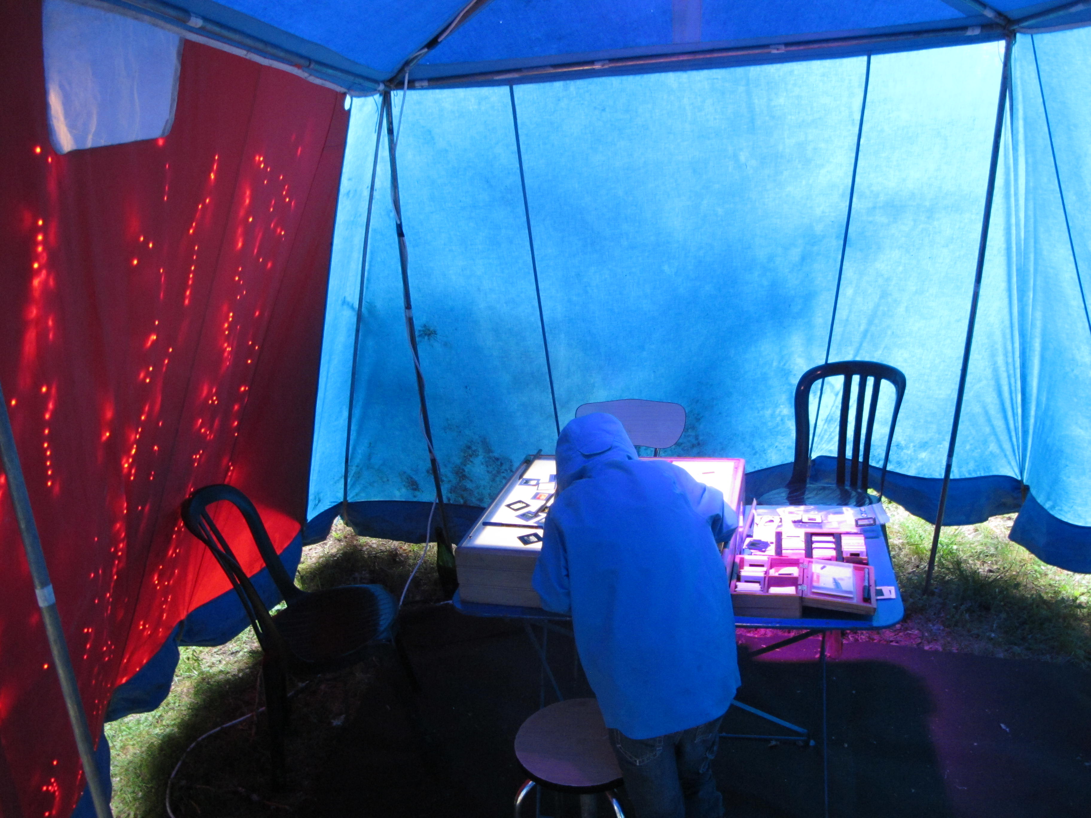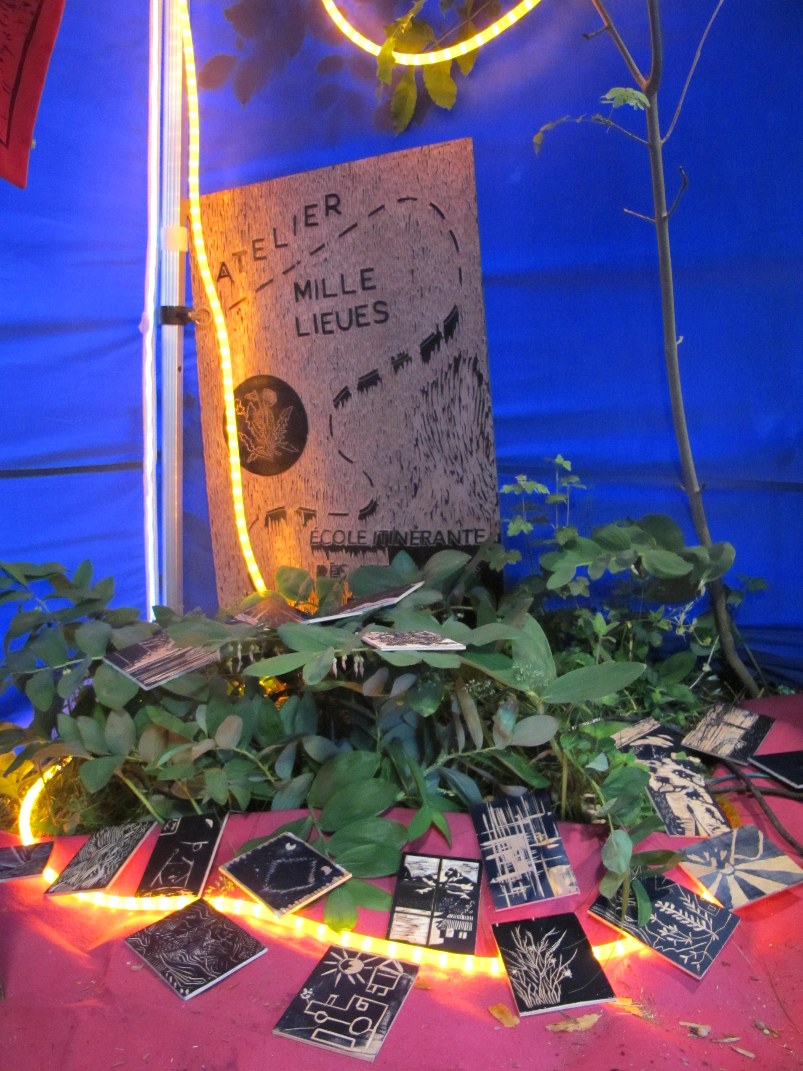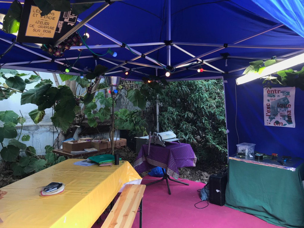 L’Atelier Mille Lieues déploie la tente bleue à CINEX, l’atelier du cinéma excentrique le temps d’une journée et d’une partie de la nuit pour fabriquer des images immobiles en gravure sur bois. En cohabitation avec la belle programmation de cinéma documentaire et expérimental de CINEX ! C’etait le 4 octobre dernier, à Saint Martin d’Hères.