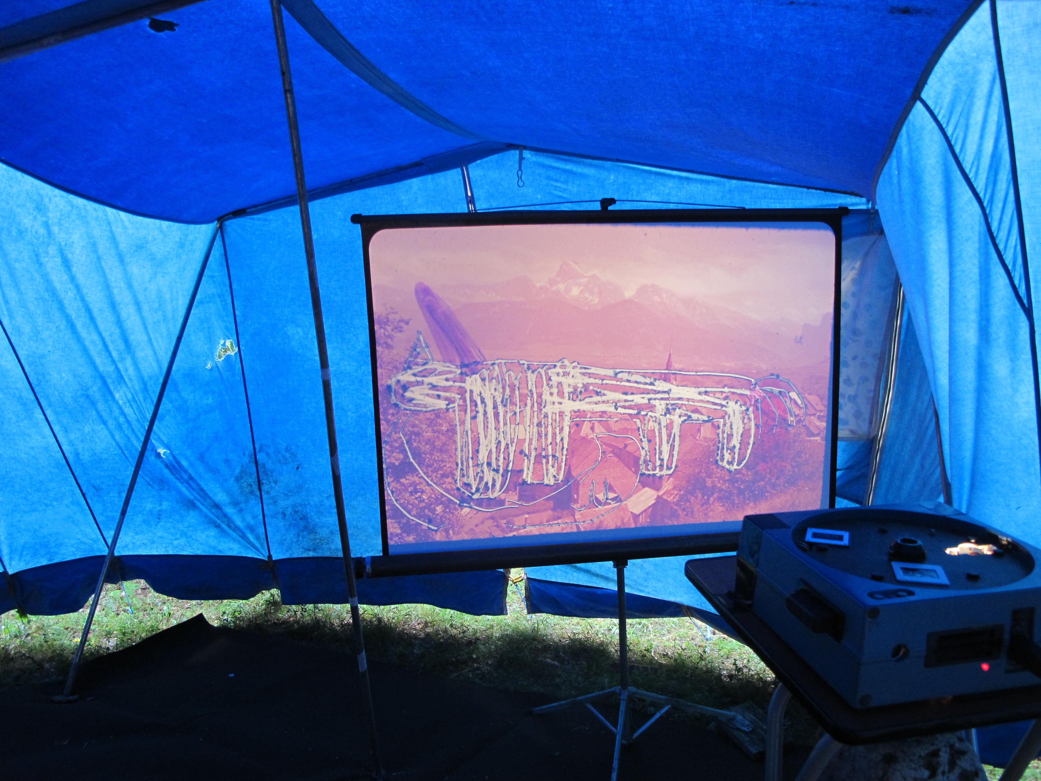 Ateliers menés sur une invitation d’À bientôt j’espère dans le cadre du week-end cinéma documentaire éphémère au Camping des Faures à Valjouffrey, L’Atelier Mille Lieues proposait durant les 2 jours, un atelier de gravure sur bois et un atelier de grattages dessinés sur diapositives.