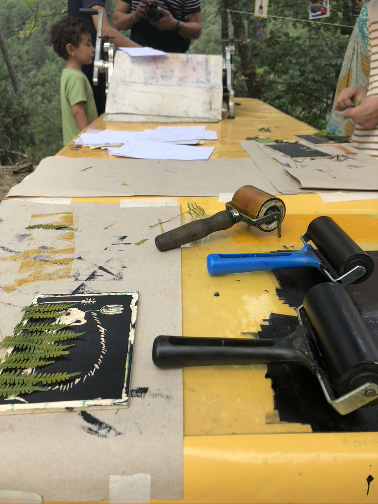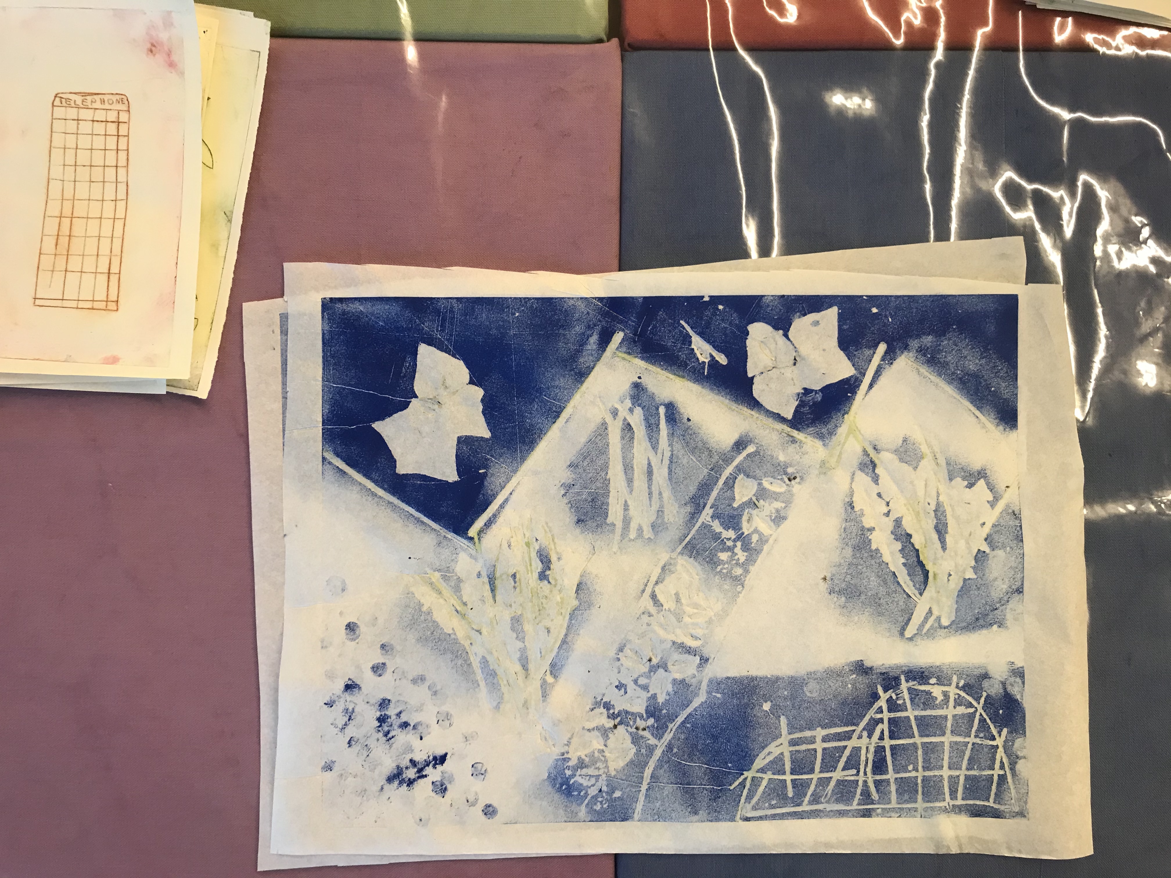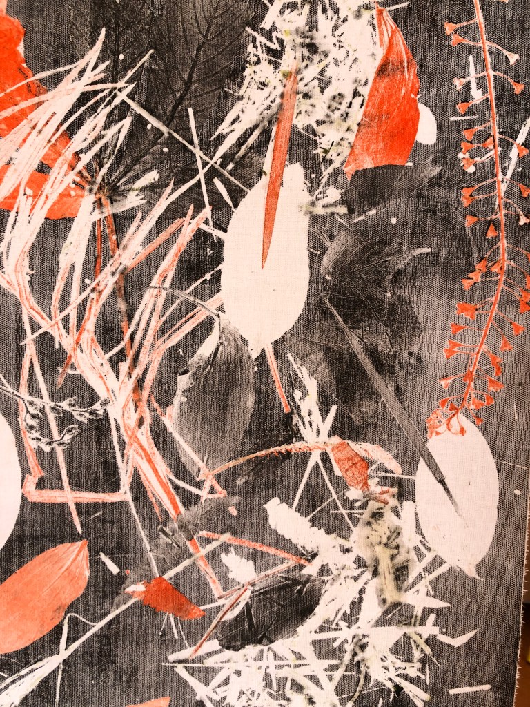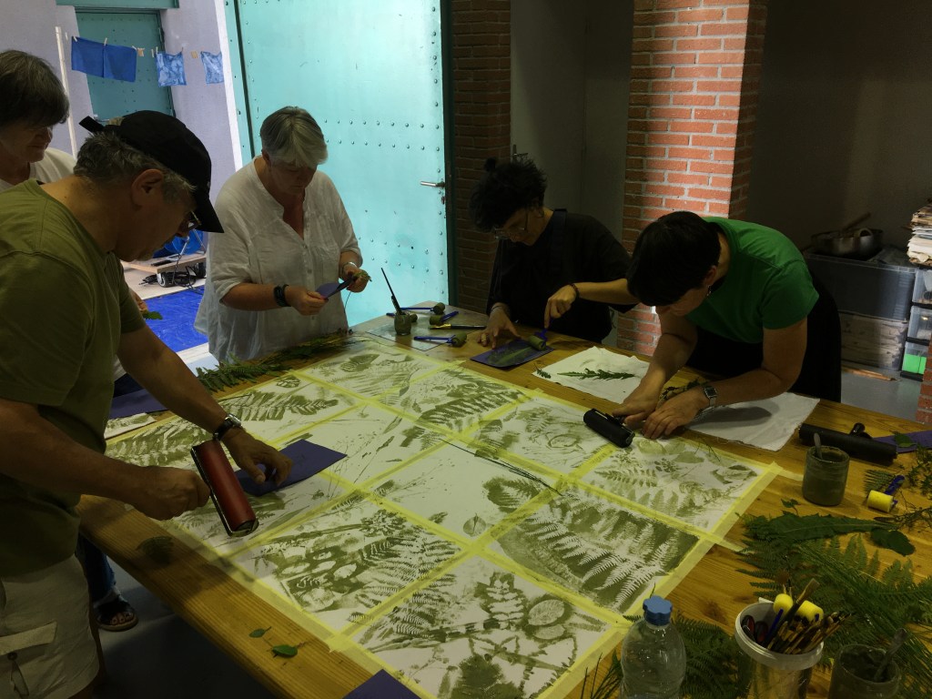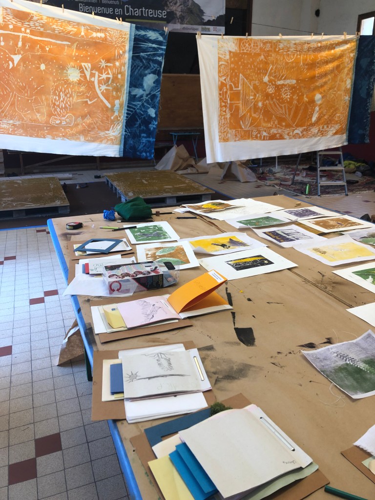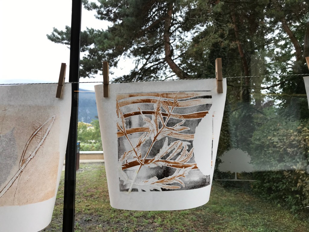 balade, ateliers de récoltes, composition et impression en monotype sur textile. Un grand merci à Elsa Blanc-Brude et Tiphaine Boulay, étudiante à l’ESAD Valence qui m’ont accompagnées tout au long du projet !