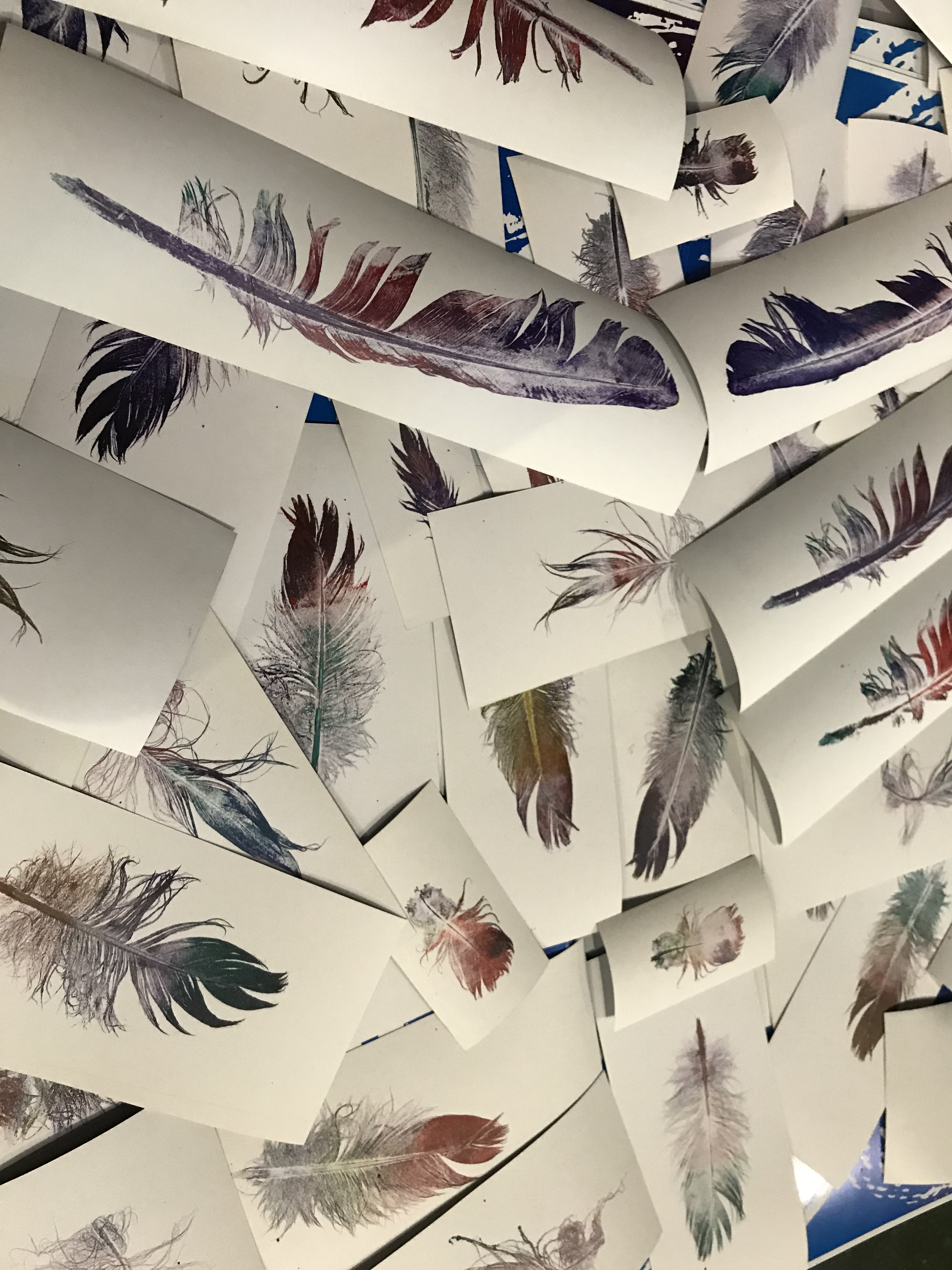 Pour répondre à l’invitation et réaliser 200 monotypes de plumes qui se glisseront dans la pochette du prochain vinyle du label : SILO 005 – Johana Beaussart & Anaïs Ponty – Otium –