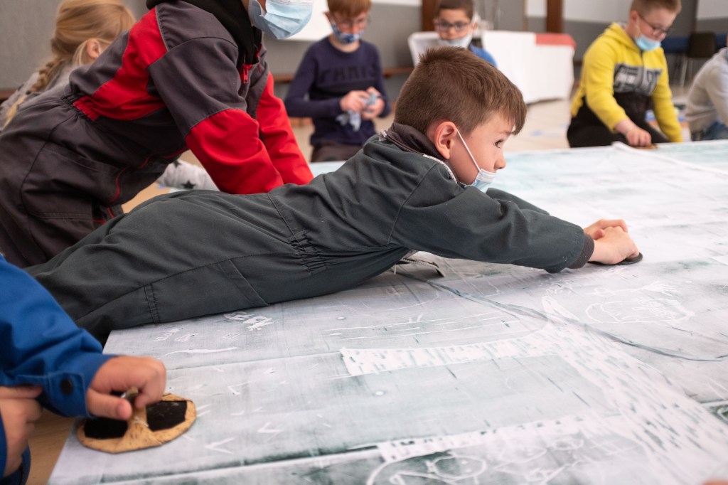 Dans le cadre de la résidence Création en Cours porté par les Ateliers Medicis, le Ministère de la Culture et en partenariat avec l’Education Nationale, ici mené avec Théo Revelen Bernard, à l’école élémentaire de Vieillespesse dans le Cantal.