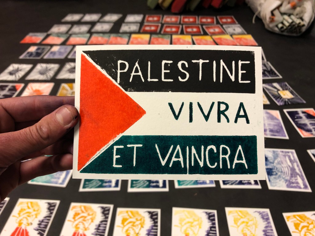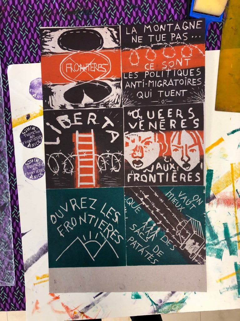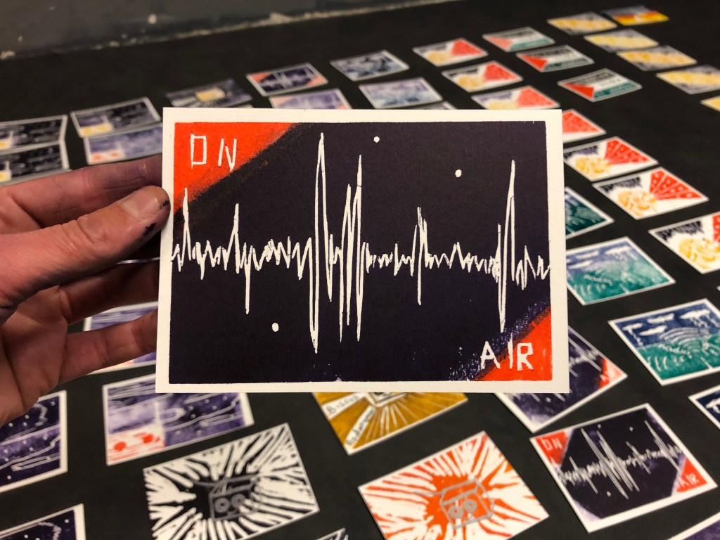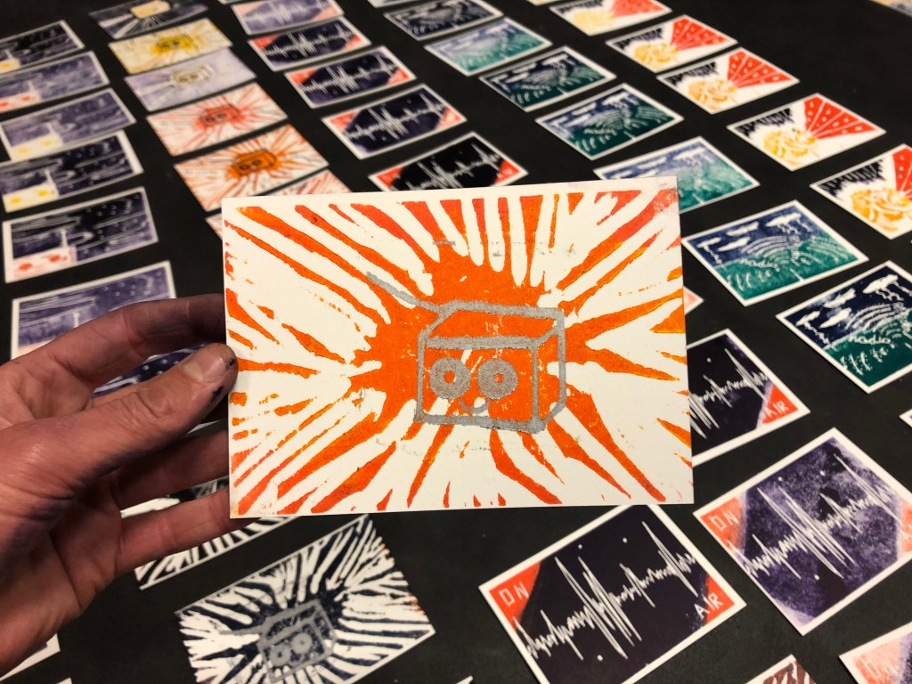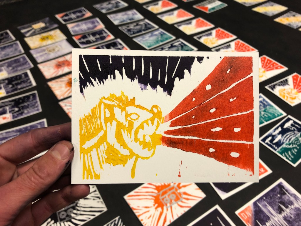 Une après-midi de copeaux et de citronnade à Grenoble avec certain·es de DégenréE – l’émission féministe pour déranger ! – pour graver et imprimer des cartes postales en soutien au réseau !