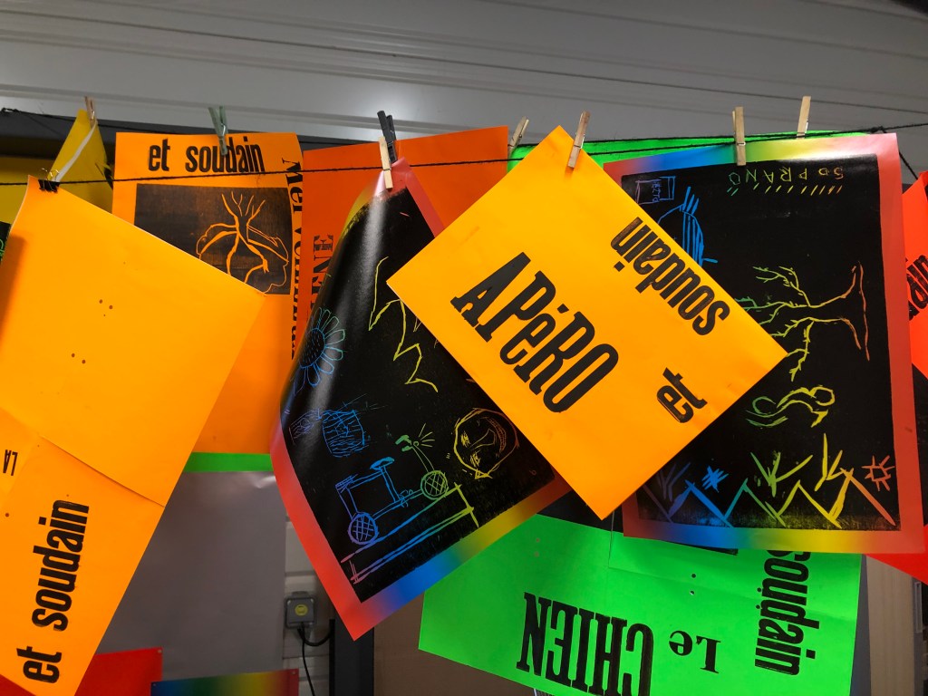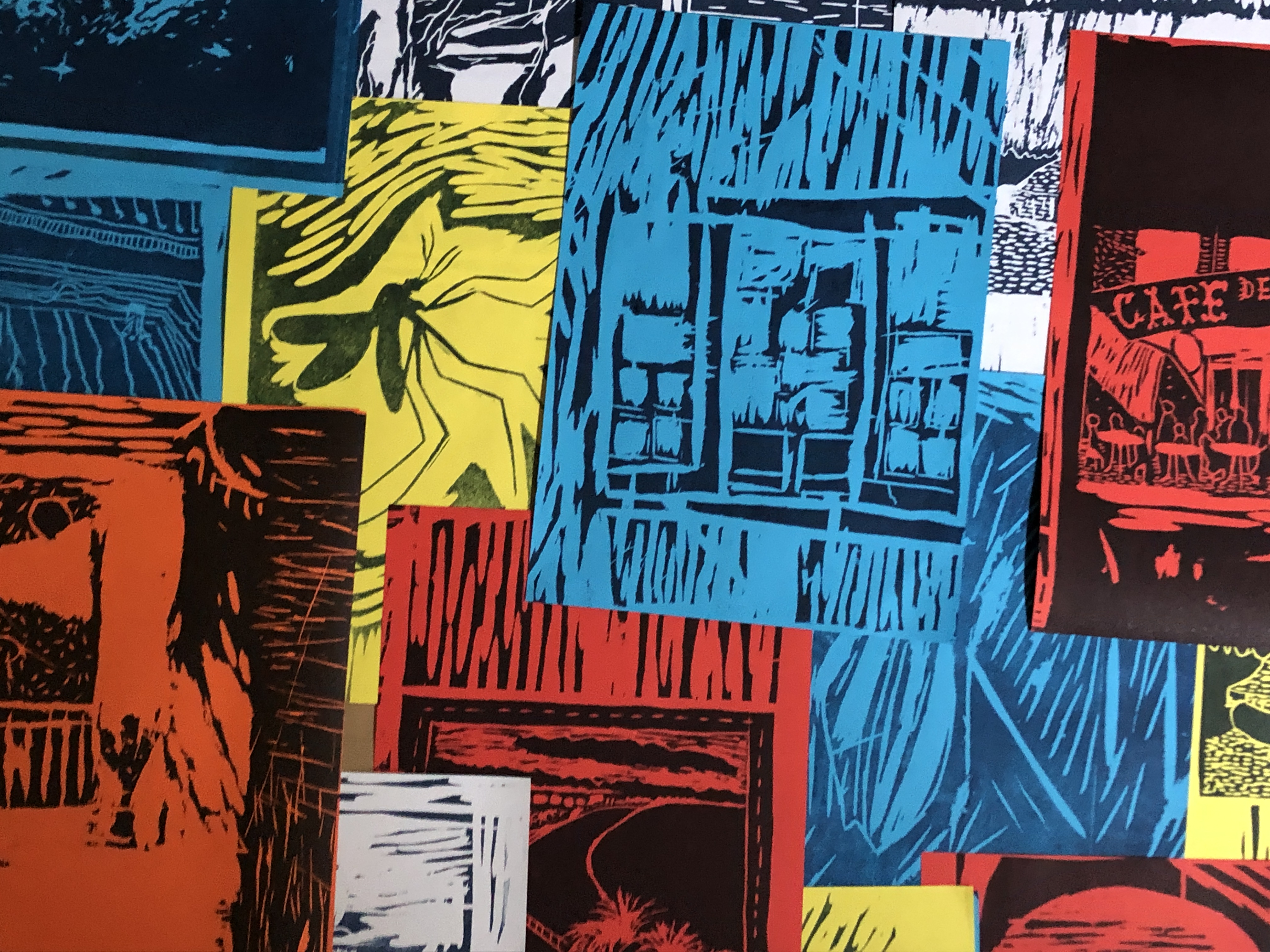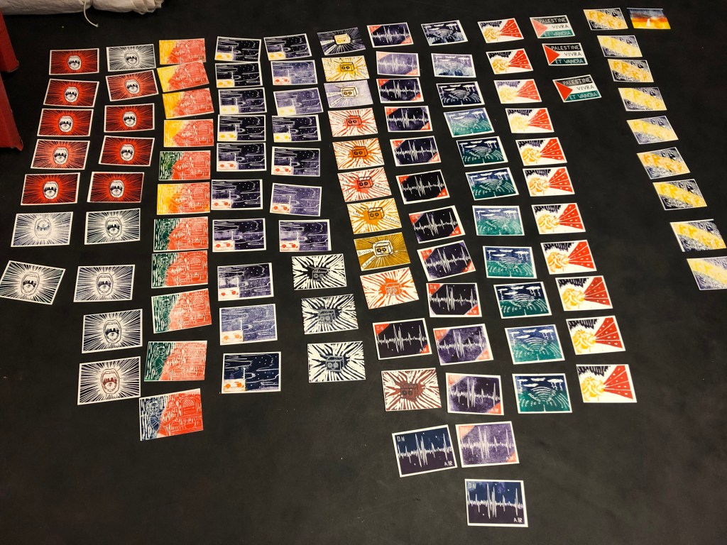 Merci à eux pour cet échange. De la gravure sur bois, des impressions sur papier, sur t-shirt, sur carte postale et du schweppes.