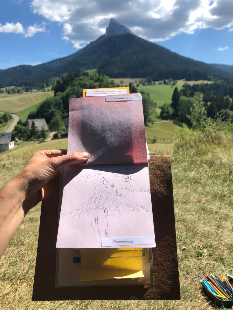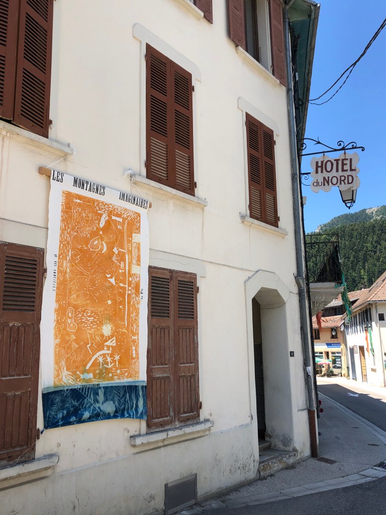 Une belle bande de 10 enfants, des balades récoltes, des cabanes dans la forêt, des cyanotypes géants, des montagnes imaginaires en gravure sur bois XXL, de la typographie, des carnets de dessin de prairies. C’était chouette et c’était du 11 au 15 juillet 2022, dans le cadre du festival des Endimanchés à Saint Pierre de Chartreuse. Les grands kakémonos que nous avons fabriqués sont resté accrochés dans les rues du village durant une année !