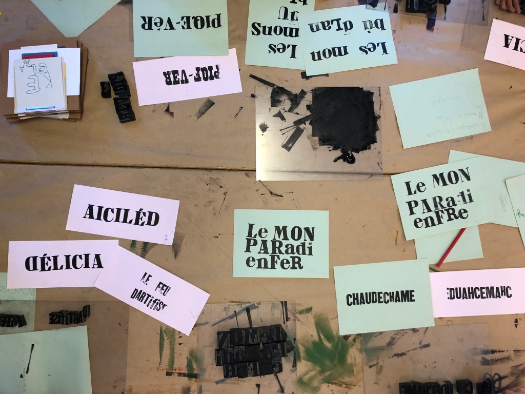 Merci à Louis Benet pour sa belle énergie, aux artistes présent·es et à Guillaume Guilpart du Paris Print Club pour nous avoir prêté sa chouette presse à essai typo !