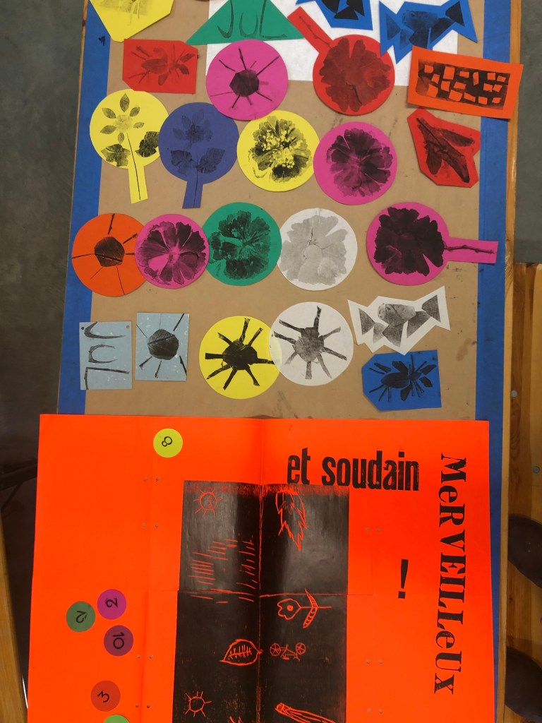 Entre mars et juin 2021, l’Atelier Mille Lieues a fait plusieurs escales à l’école de la Mayette à Vinay, pour un projet de dessin et d’empreintes en résonance avec l’ouvrage « le vieux fou de dessin », récit entremêlé où l’on fait la rencontre d’Hokusai, sur une invitation de Pierre-Yves Kerlo’ch, instituteur.
