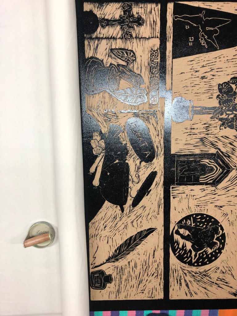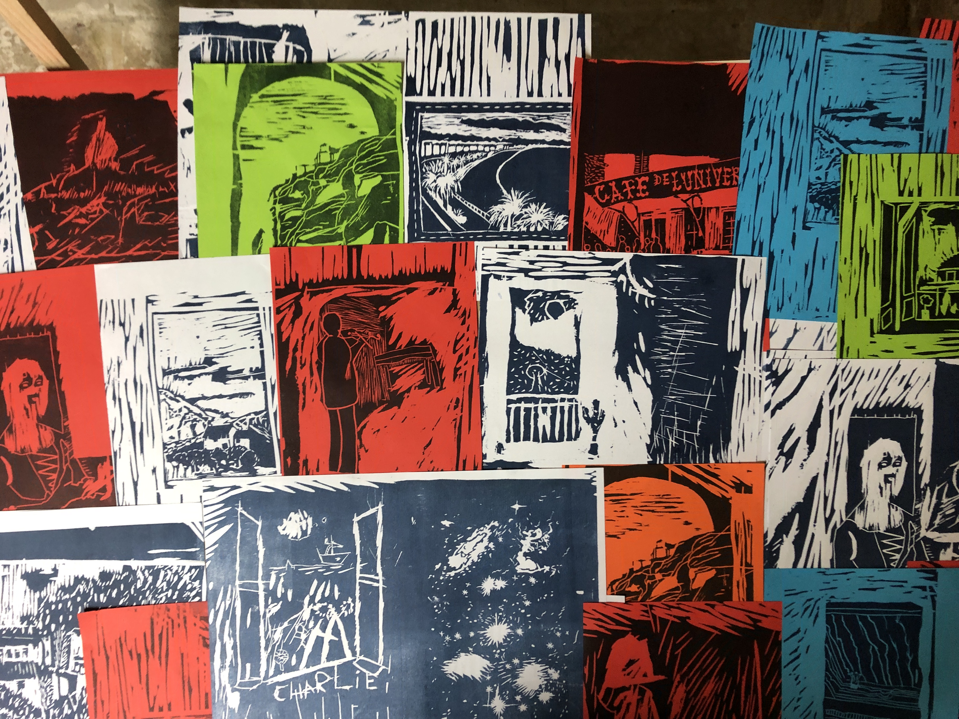 Gravure sur bois et ateliers d’écritures / un projet pensé avec Benoit Briand de l’association Dasa et mené avec un groupe de détenus sur la première quinzaine d’aout.