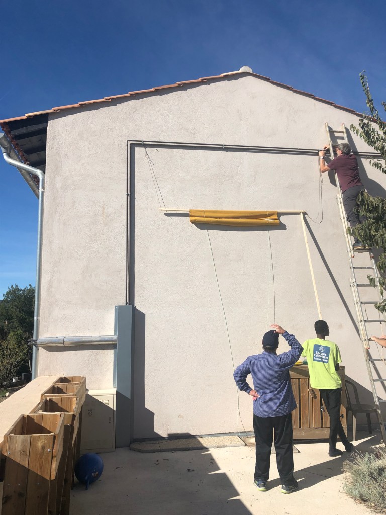 On transpire des mains sous le auvent du Défend! citronnade et copeaux. L’été 2019 à Rousset.