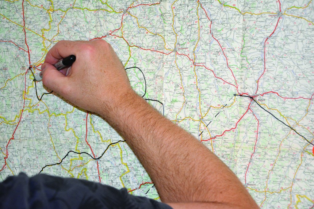 Chaque participant a choisi en début de projet un carte géographique. Elle est devenue le support d’une sorte de « pékin express virtuel* », guidé par des situations et des directions tirées au sort.