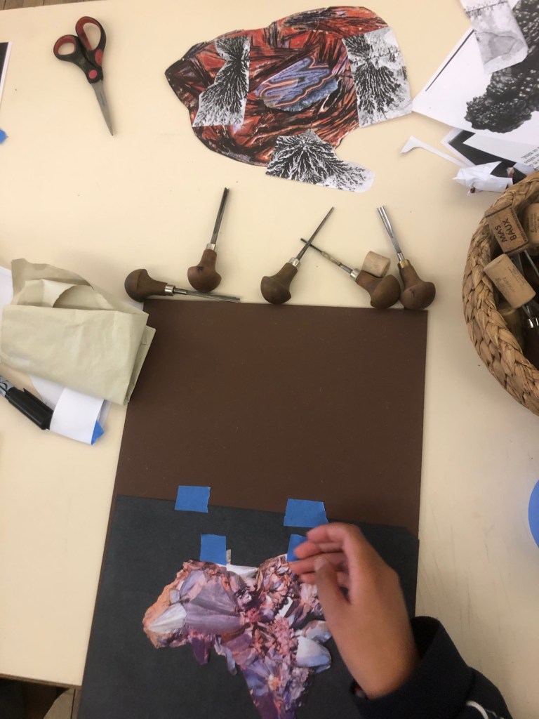 Ce cycle d’ateliers s’est construit à la croisée du réel et de l’imaginaire, avec comme point de départ le minéral, ses plis, ses dessins et ses textures.