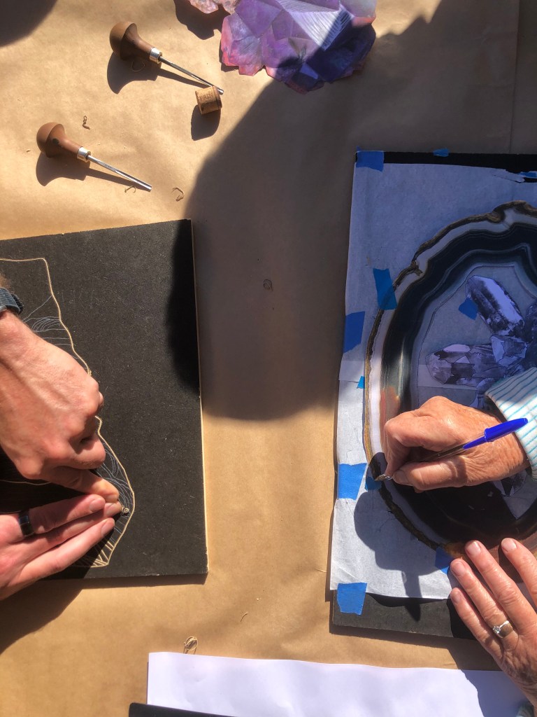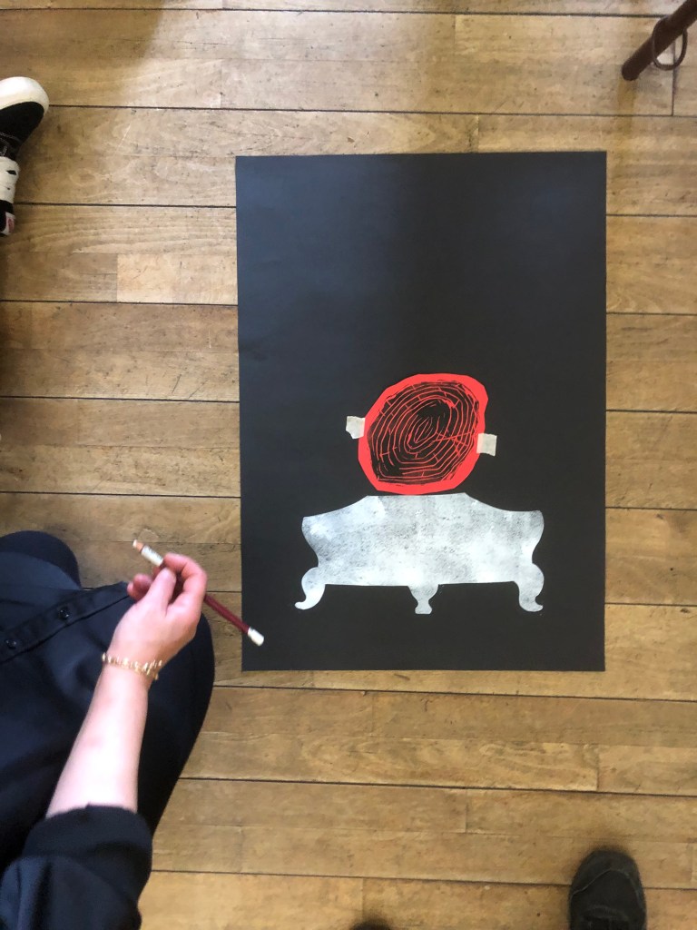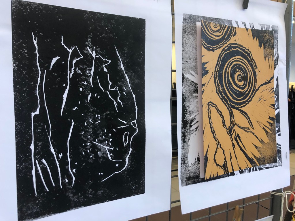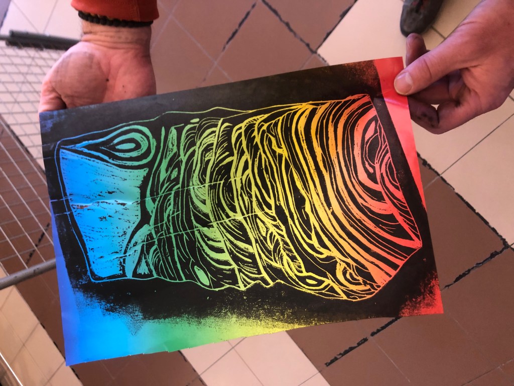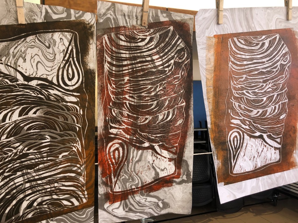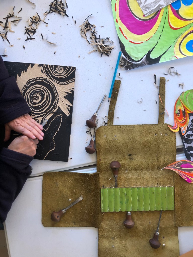 Chaque atelier a abordé une technique d’image imprimée différente (gravure sur bois, gravure pointe sèche, marbrure, suminagashi, collagraphie/monotype).