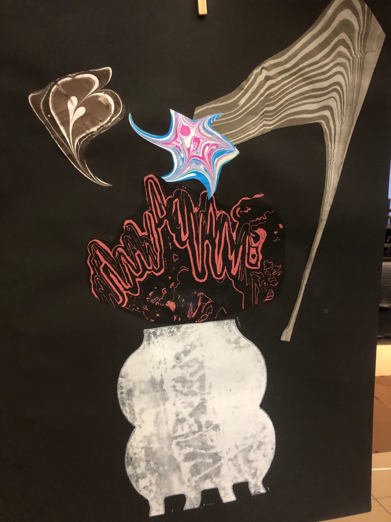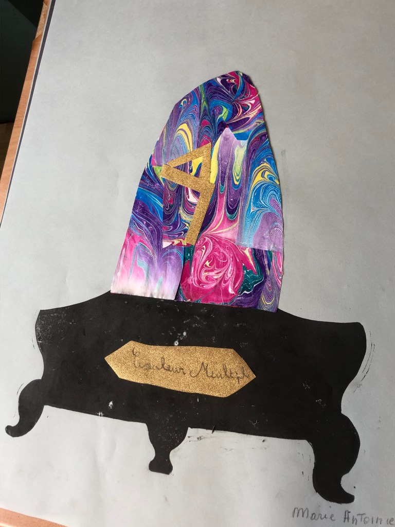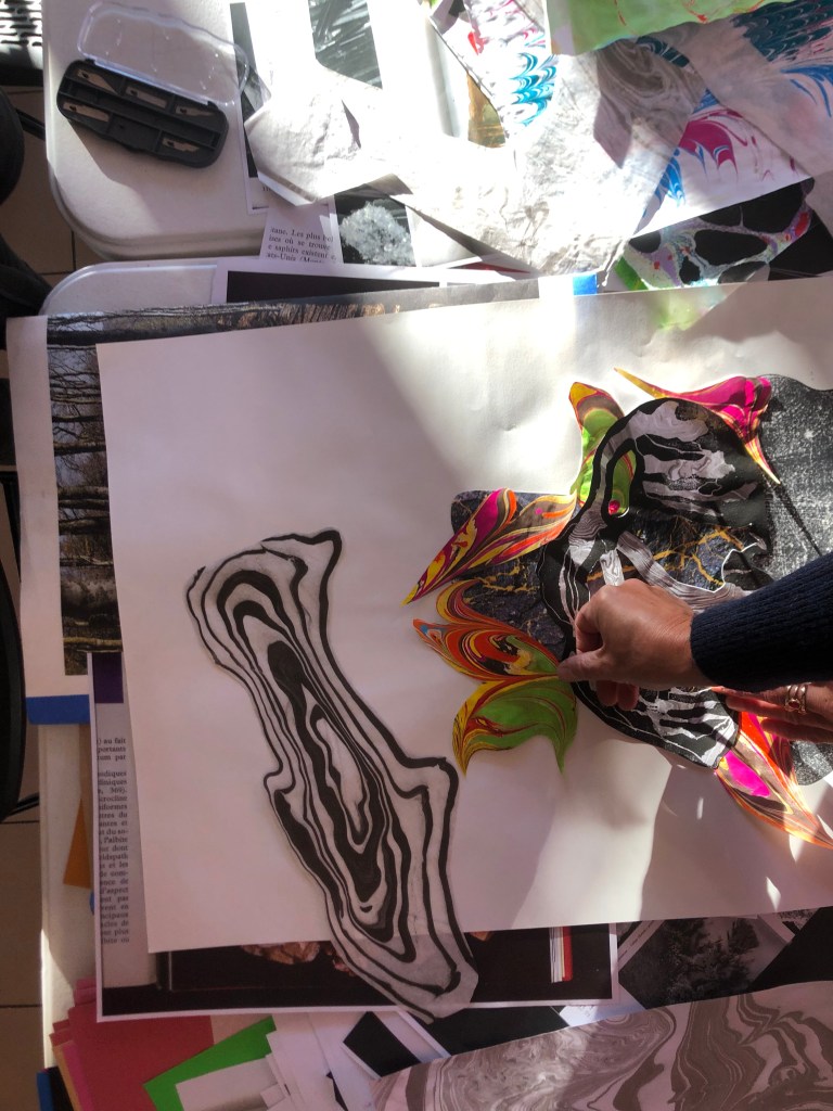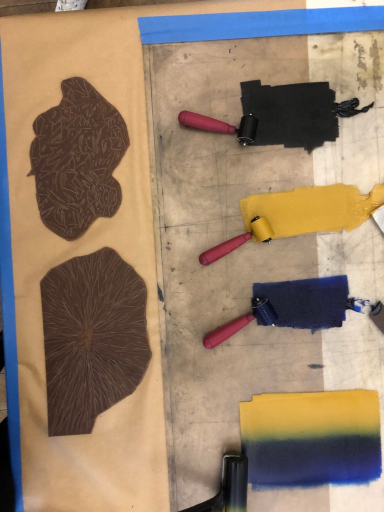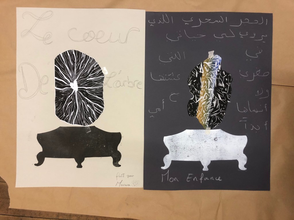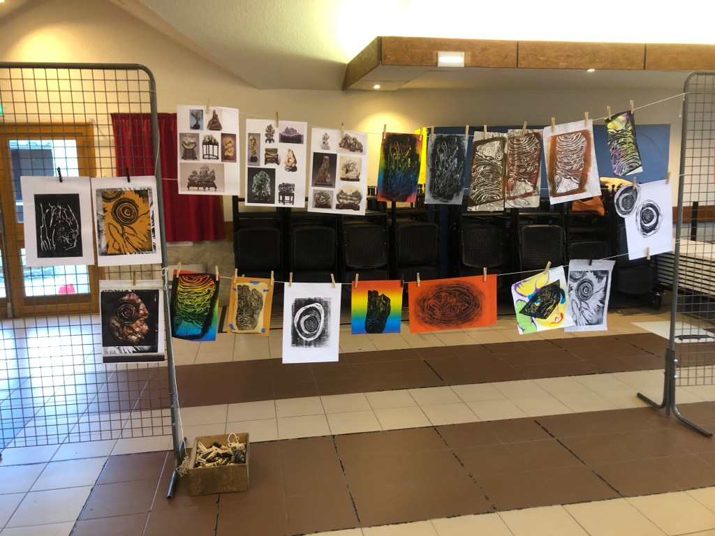 Chaque atelier a abordé une technique d’image imprimée différente (gravure sur bois, gravure pointe sèche, marbrure, suminagashi, collagraphie/monotype).