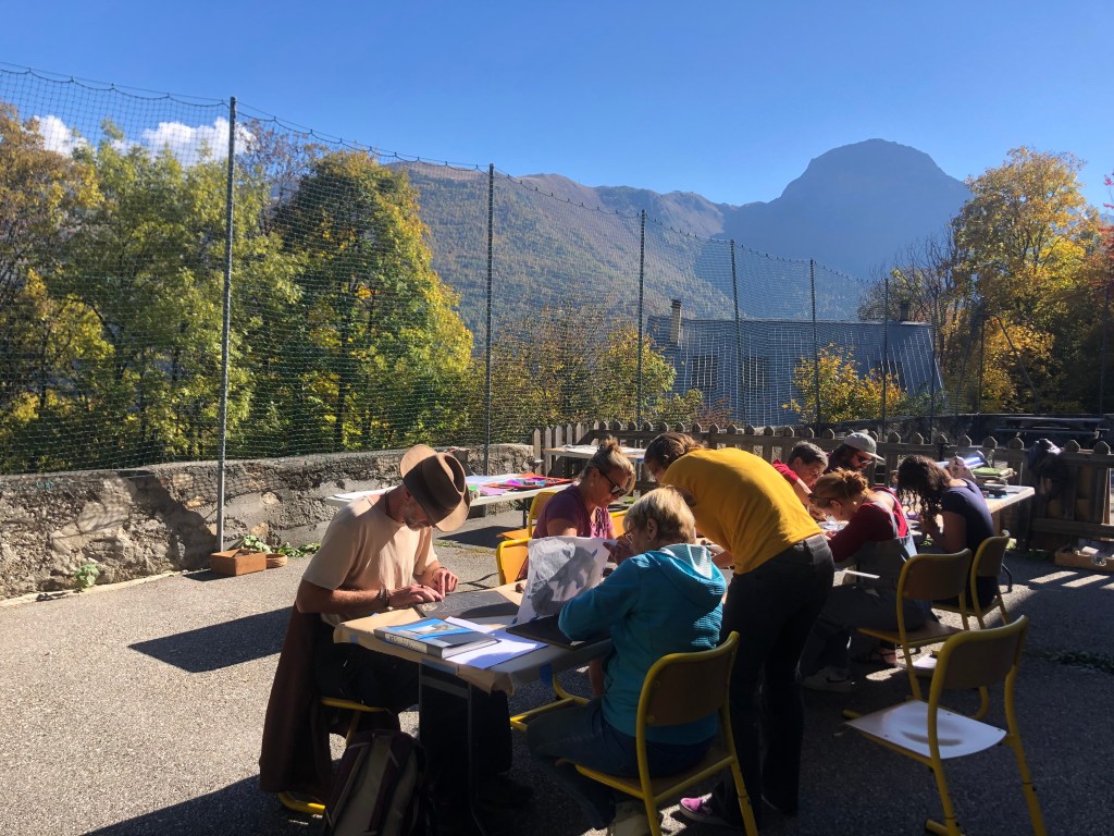 > à Auris et Mizoën avce un groupe d’habitant·es en partenariat avec les bibliothèques d’Auris en Oisans et de Mizoën sur 4 après-midi d’ateliers.